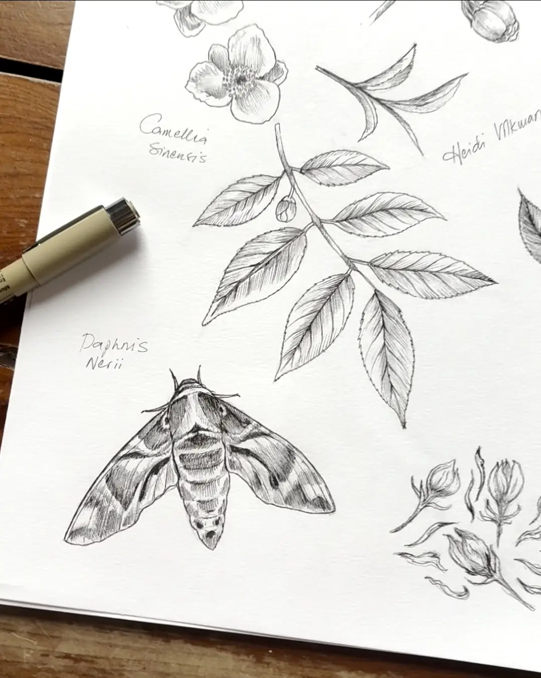 My illustration work brings cultural research and botanical detail to life - appearing on packaging, stationery, and other formats. Every piece starts as a hand-drawn sketch, rooted in your brand's narrative, then develops through hand crafted sketches and digital refinement.